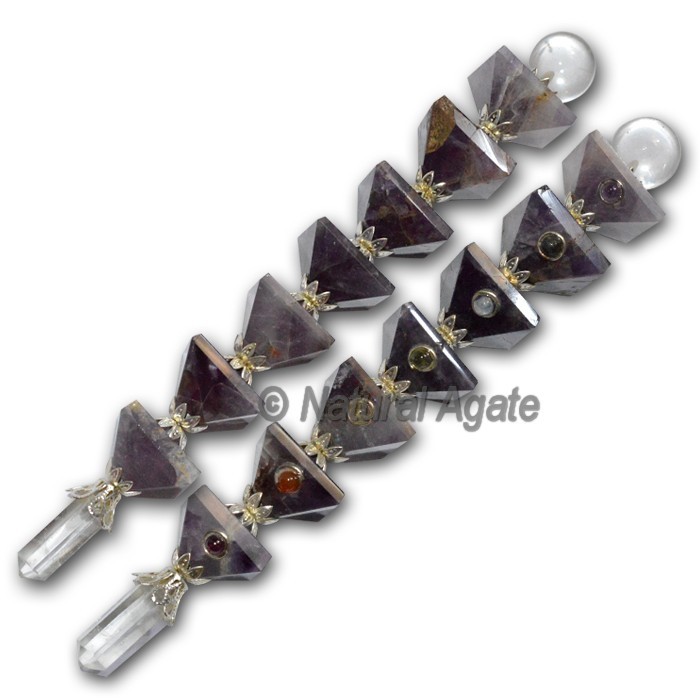 Amethyst Pyramids with 7 chakra cabs wands,Wholesale healing wands. Buy All kinds of Gemstone healing wands at Natural Agate.. Contact us for your own desings.