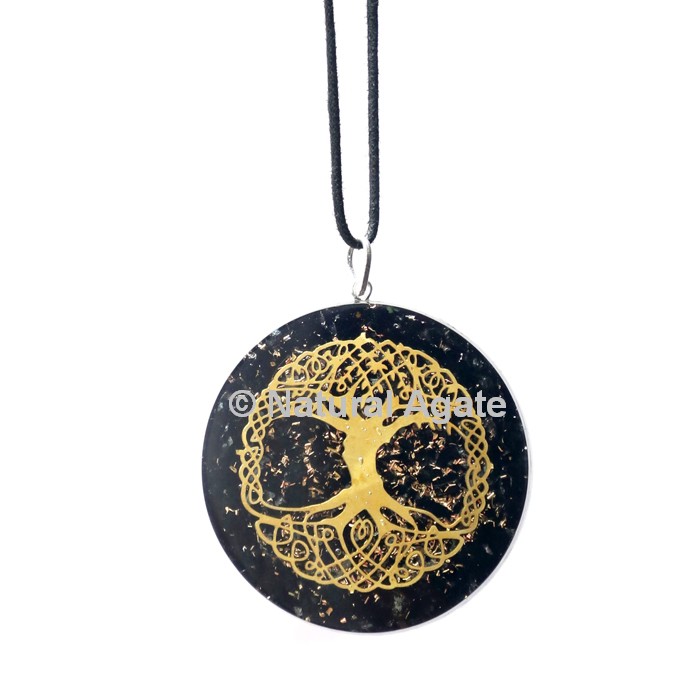 Black Agate is used for its grounding, balancing and centering effects. It is closely connected to the Root chakra. Wearing jewelry made from this gemstone will bring you peace, balance your positive and negative energy, relieve anxiety and provide protection during hard times. Orgone is created by layering organic and inorganic materials that are able to harness this vital life force energy and amplify it so you can actually feel a sensation with it. Place an order for Black Agate Orgone Disc Pendant today at Natural Agate.