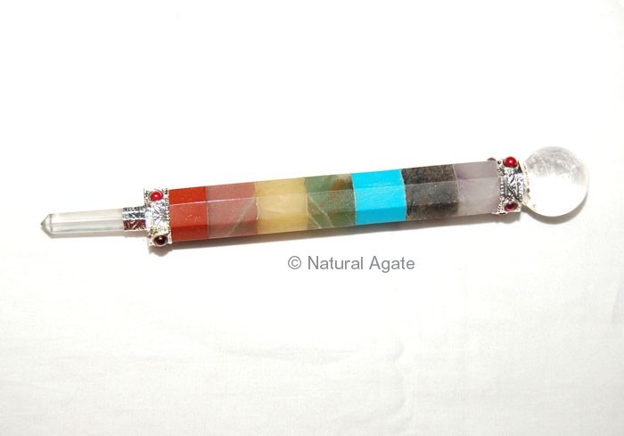 Chakra Layer Wand is available on Natural Agate. Chakra layer in wand shows the arrangement of body chakras. The wand ensures a continuous flow of positive energy in the body.
