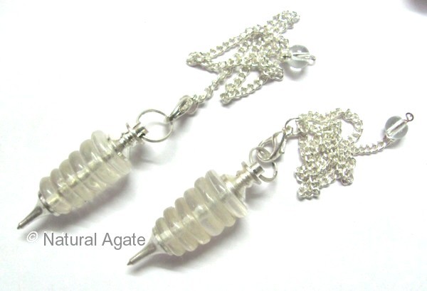 Crystal quartz is carved into disc shaped stones and uses them to make Crystal Quartz Disc Pendulum. It can be used for dowsing or for healing. Natural Agate offers this pendulum at a fair rate.
