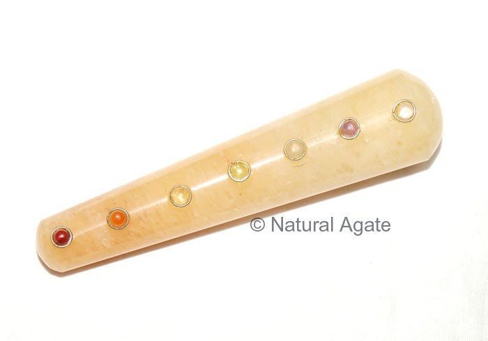 Golden Quartz Chakra Massage Wand can be rolled easily on the body. It can be used to overcome lethargy, worries, fear and to rejuvenate the body. This wand is available on Natural Agate in lengths ranging from 3-7in.