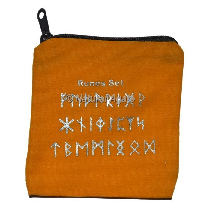 Buy From Natural Agate All types of customs design, healing new age pouch. Buy now Orange Rune Set Printed Velvet Pouch. For your customs logo printing or color print on pouch kindly contact to us.
