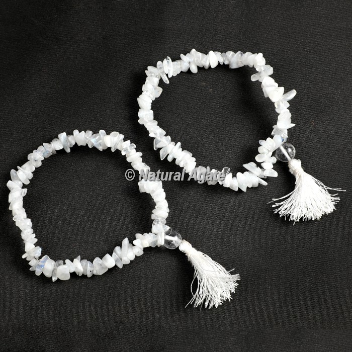 Rainbow moonstone is thought to bring balance, harmony and hope while enhancing creativity, compassion, endurance and inner confidence. Rainbow moonstone is believed to help strengthen intuition and psychic perception, especially offering us visions of things that aren't immediately obvious. Place an order for this wonderful Rainbow Moonstone Chips Healing Yoga Bracelet at Natural Agate.