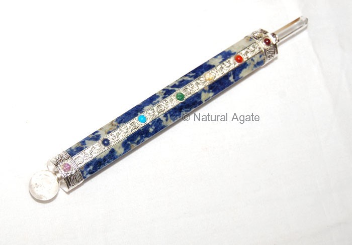 Sodalite Chakra Wand keeps your mind away from chaos and helps you to recover from emotional wounds. Get this wand from Natural Agate at a fair price. The wand is 3-7in long.